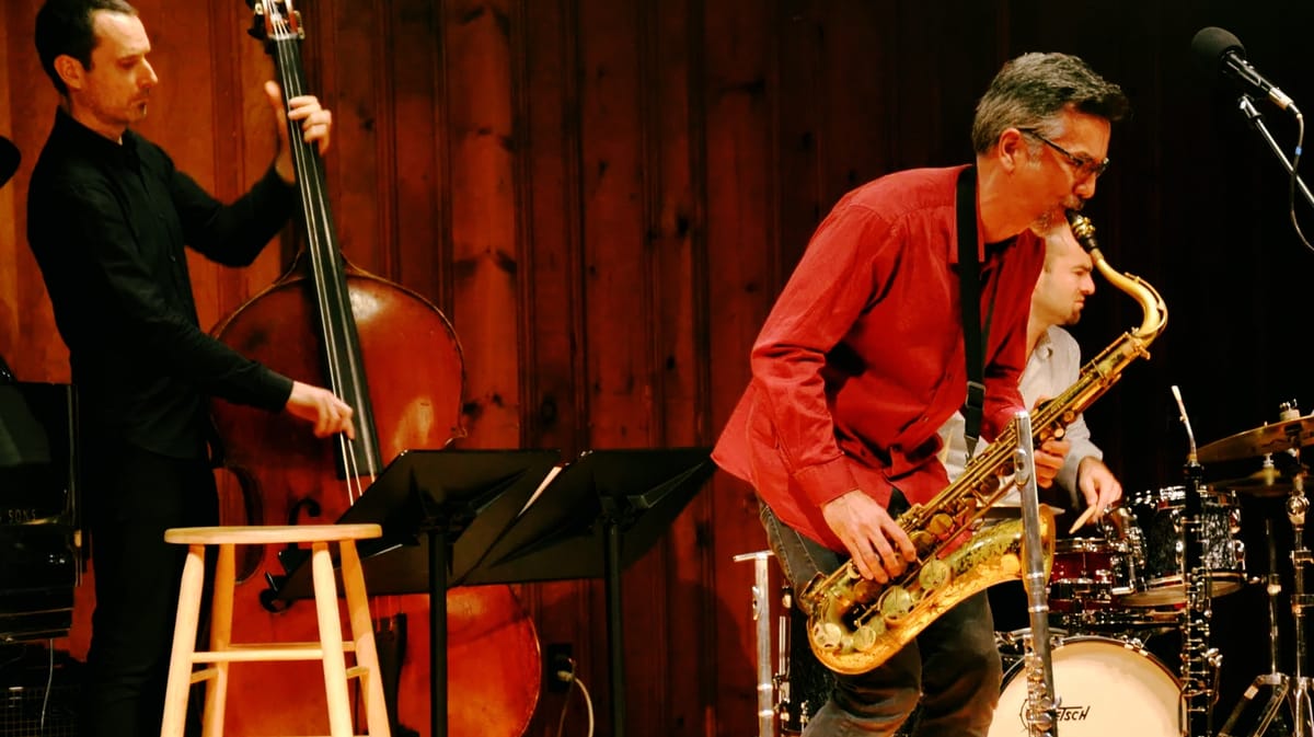 Now, I lead a jam session for some adult students who started playing in their seventies. It's great. We have Nick D'Amato, who's on the album, and another Nick, Nick Halley, who plays drums here. He used to play drums for James Taylor and now lives down the road. He's an incredible jazz drummer. So once a month at this small-town pub—a place you would never suspect—we have this session where people of all abilities can come out and play. The main thing I hope it has is that everybody should feel comfortable, regardless of their skill level or age. And I think so far it's been successful.