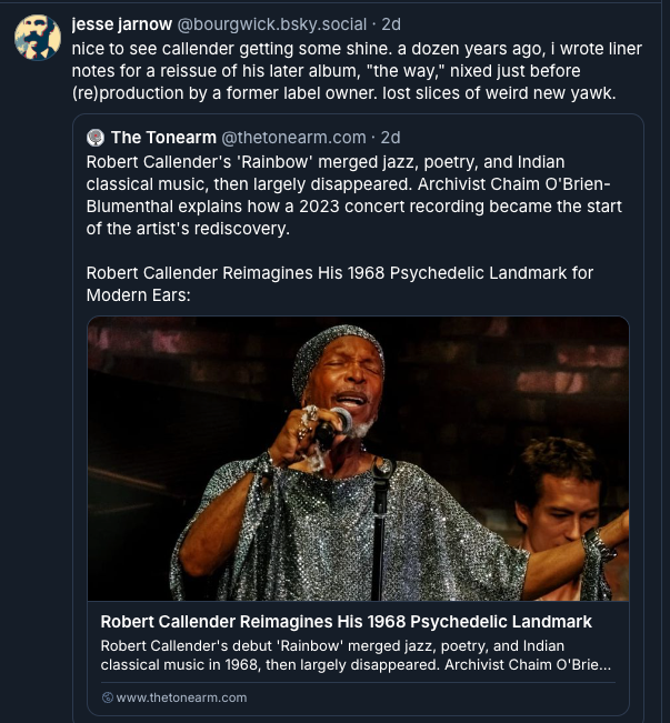 There are tales of rose petals dropped behind him wherever he walked, an entourage in tow, as he spoke only French to the studio crew. The myths about Robert Callender persisted for decades because nobody knew anything real about the artist behind 1968's Rainbow, a remarkable fusion of jazz, psychedelia, and Indian classical textures that disappeared almost immediately after release. Bill Kopp talks with archivist and writer Chaim O'Brien-Blumenthal, who tracked Callender down for a Shindig! magazine feature and discovered "a lovely guy who is very dedicated to his art." Before Rainbow, Callender was Bobby Callender, cutting regional R&B hits like "Little Star." Soon, he was swept up in the creative breeze of the late '60s, studying Sgt. Pepper, hanging with the Warhol crowd at Ondine's, and absorbing everything. Though his debut album featured seasoned young jazz musicians who'd played on sessions for the likes of Aretha Franklin, Callender guided them to fully realize his intricately constructed tone poems. Fifty-five years later, a 2023 anniversary concert at Orlando's Timucua became the catalyst for rediscovery. Chaim watched the livestream and thought, "This is amazing! He's managed to transcend it into something new." The performance, now released as Rainbow: The Anniversary Concert, features Callender accompanied by tabla, sitar, a string quartet, and the band Golden Flower. The recording puts a kaleidoscopic new spin on the original songs. Now, Chaim is helping with touring plans for Callender, looking to (re)introduce him to a young audience that may have only heard the original songs as samples on numerous hip-hop records.