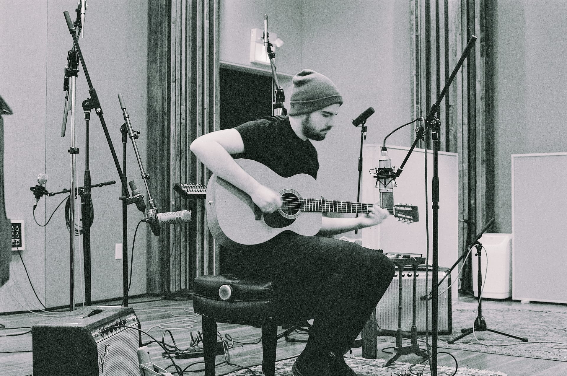 Lawrence: Could you tell me a little about the sonic palettes you drew from? How collaborative is that? When choosing prepared piano versus traditional piano, choosing an effects-laden guitar, are you collaborating on the palette and what I'll call in air quotes "instrument choices"?