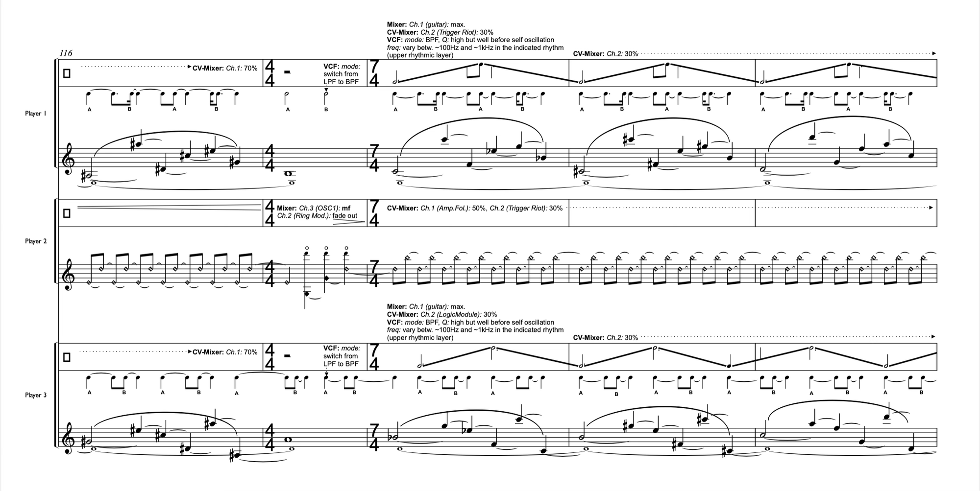 Marko: When I composed this piece, I started with this trio, and I didn't yet know where I was going with it. I just knew I was composing a piece for three guitars, and there's probably going to be some electronics. I composed this four- or five-minute piece very quickly, in a day or two. I really liked it, I have to say.