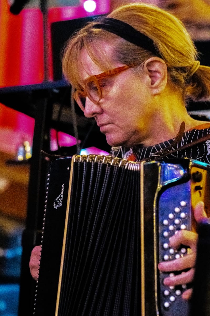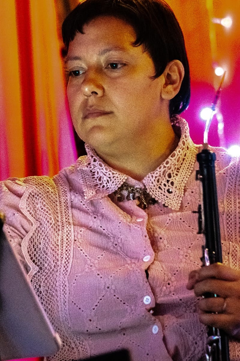 "No, she doesn't like to define things," Beatriz Ortiz-Belt said of working out Holly's compositions during rehearsals. Bea, classically trained on both English horn and oboe, sharpens the focus.
